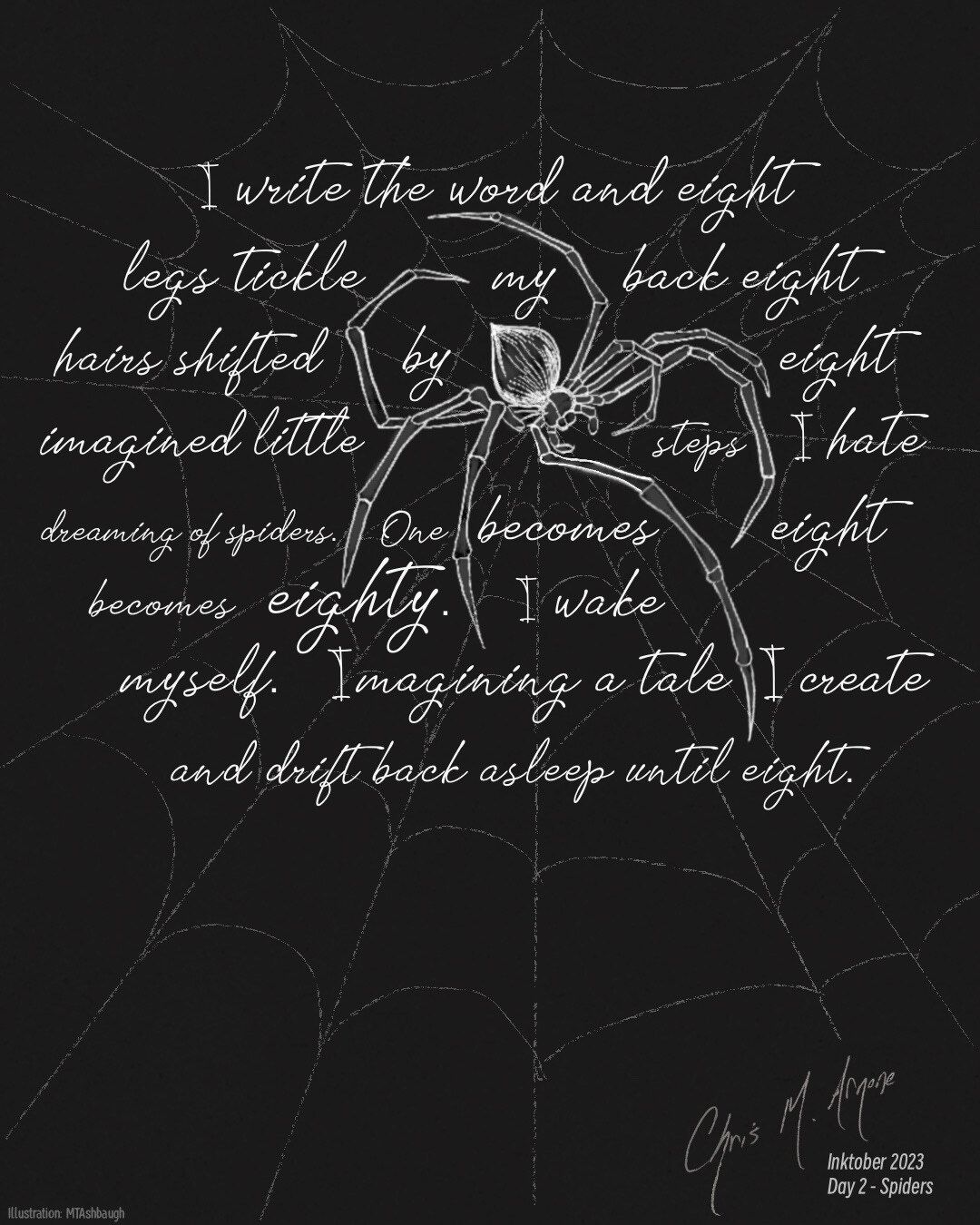 I guess I was still thinking about dreams after the first poem. More truth here. You ever get those weird tickling sensations like you have bugs on you even though you don’t? Like phantom ick. Then, yeah, whenever I start dreaming about bugs, they tend to multiply, so I wake myself up. I focus on a story problem I’m working on, and let that take me back to sleep. Most of the lines here end with “eight,” and those that don’t rhyme or slant rhyme.