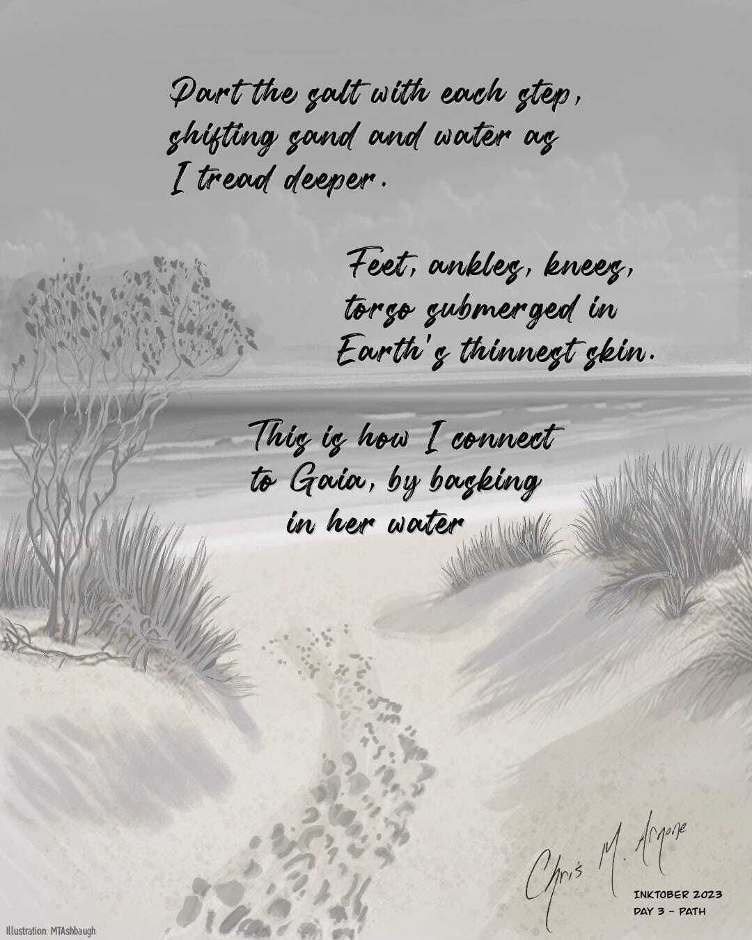 Almost done with the beach poems, I swear. This was the second of several acrostic poems that I wrote during the month. That is, the first letter of each line spells out a word, the prompt word. The Path poem was the first. This was not a great poem to me, but it fulfilled the challenge for the day.