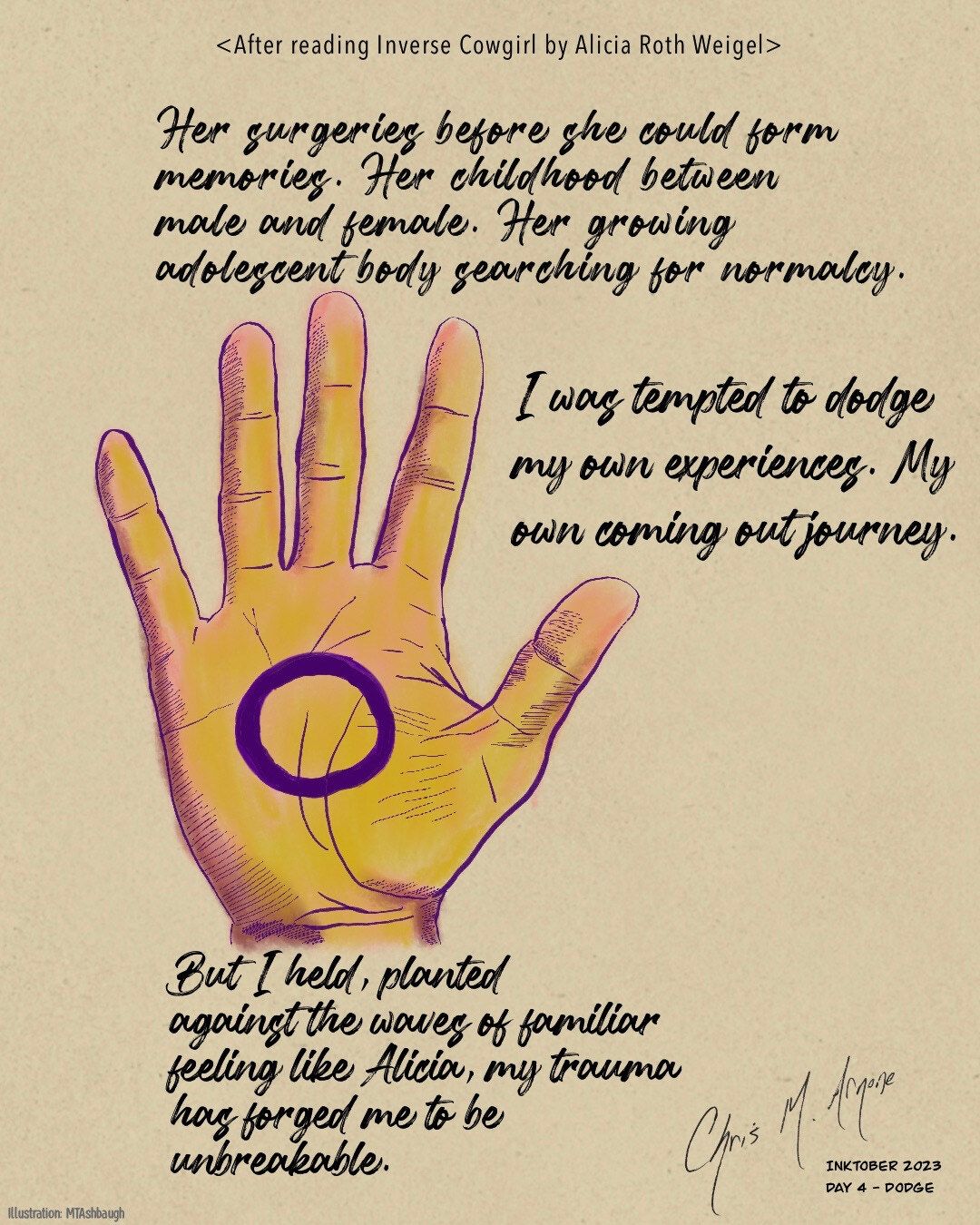 I’m intersex, and so I was really looking forward to the release of Inverse Cowgirl by Alicia Roth Weigel. It’s a memoir of her life as an intersex woman. I read the entire book in about a day and loved it. Maybe I should write a memoir? I’m still thinking about that. Needless to say, I needed to poetry about it.
